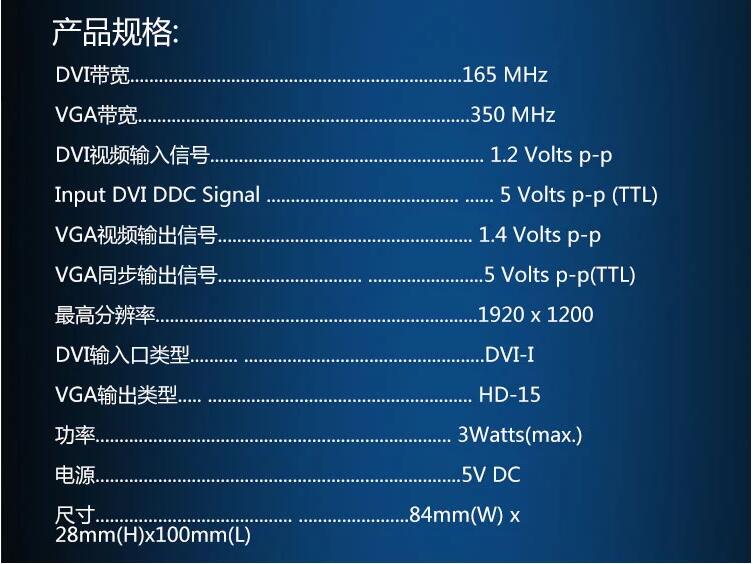九视JS1162DVI转VGA高清视频转换器是一款高清无损转换,显示信号增倍输出的视频转换器,DVI-D ( D= Digital ) 是纯数字信号接口, 只能去接 DVI-D 接口的信号。DVI-I:数字+模拟 DVI-I接口旁边的4针是RAMDAC转出来的模拟信号,当 DVI-I 接DVI-D时,只起了 DVI-D 的作用。